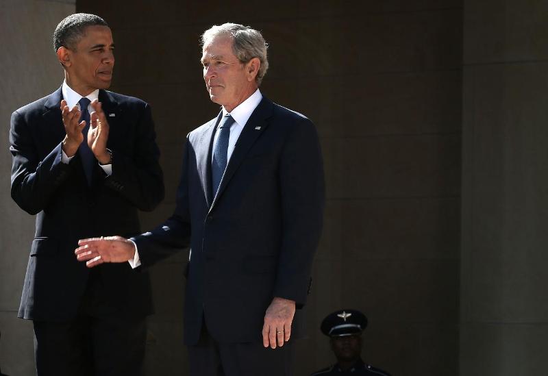 President Barack Obama and former President George W. Bush arrive at the opening ceremony of the George W. Bush Presidential Center in Dallas in 2013. (Photo: Alex Wong/Getty Images)